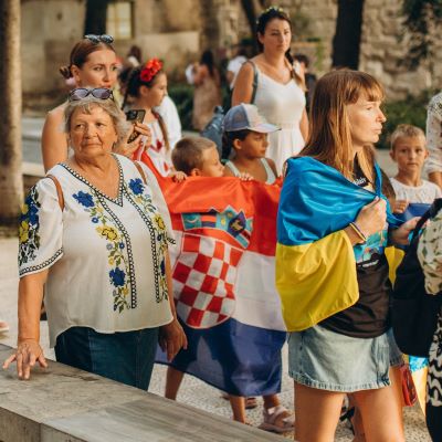 Radionica je protekla u veselom druženju, premda su čežnja i želja za domom bile neizostavne. Plavi i žuti motivi na slikama simboliziraju zemlju koja je svoju neovisnost stekla 24. kolovoza 1991., prije 33 godine. Unatoč izbjeglištvu i brojnim poteškoćama na koje su nailazili odlaskom iz svoje domovine, mnoštvo Ukrajinaca ponosno su prošetali centrom grada Splita noseći svoju zastavu i pjevajući pjesme. Autorica Dariia Huram je zabilježila ovo događanje čiji je cilj zagovaranje mira i ustupila nam fotografije.