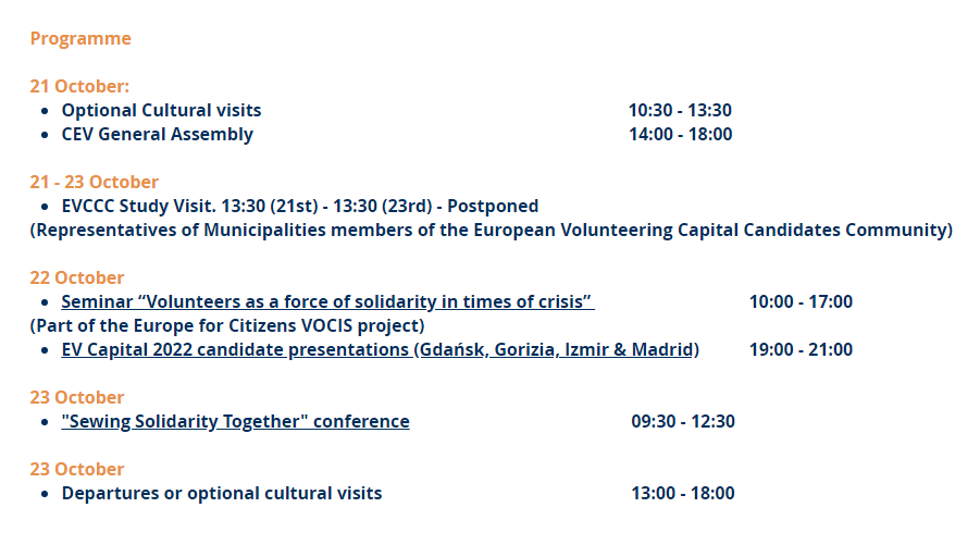 U sklopu kongresa, 22. listopada će biti posvećen VOCIS projektu (Volonteri kao snaga solidarnosti u vremenima krize). Projektni partneri predstavit će projektne aktivnosti i istraživanje provedeno u Belgiji, Hrvatskoj, Srbiji, Poljskoj i Italiji. Cilj istraživanja, koji je proveo sociološki tim Udruge "MI" - Split bio je ispitati stavove o volontiranju za vrijeme krize - s posebnim naglaskom na iskustva i važnost volontiranja za vrijeme izbjegličke krize. Rezultati istraživanja bit će prezentirani i u narednim događanjima u sklopu projekta, čiji je cilj promovirati volonterstvo kao snagu solidarnosti i zajedništva, posebice u kriznim razdobljima u društvu.